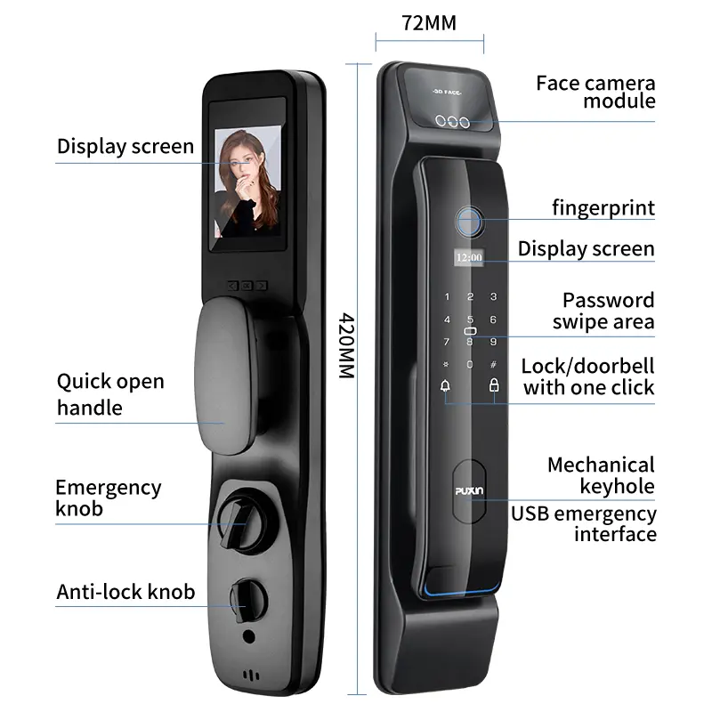 Як професійний виробник і постачальник інтелектуальних замків із Китаю, PuXin має багатий досвід у галузі інтелектуальних дверних замків із вигідними ціновими перевагами та охопленням більшості ринків Європи та Америки. PuXin DF65 3D Face Smart Lock, основний біометричний продукт, має високоточний бінокулярний інфрачервоний алгоритм розпізнавання обличчя та високоякісну обробку поверхні, що забезпечує ефективне розблокування, довговічність і антистатичні характеристики.